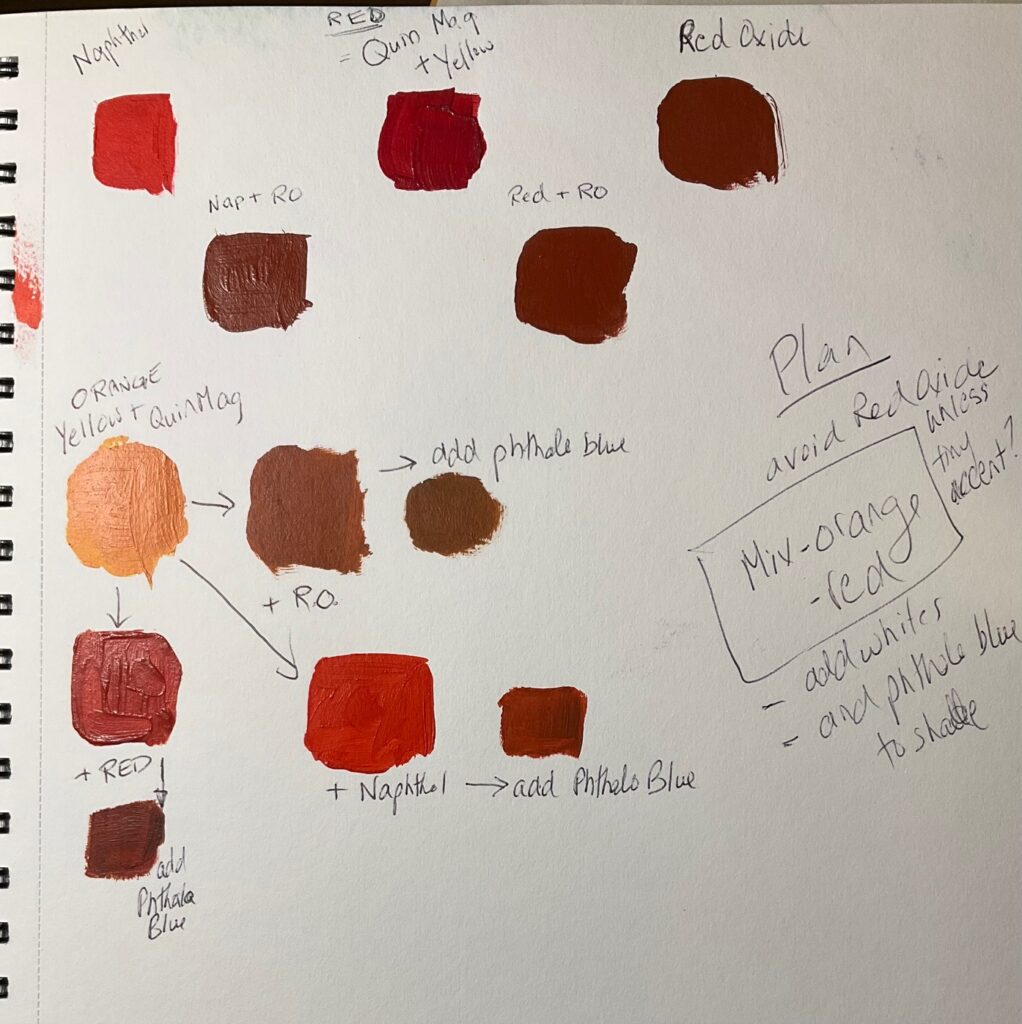 More work on colour palette for figures… then on to the canvas, work in progress below…